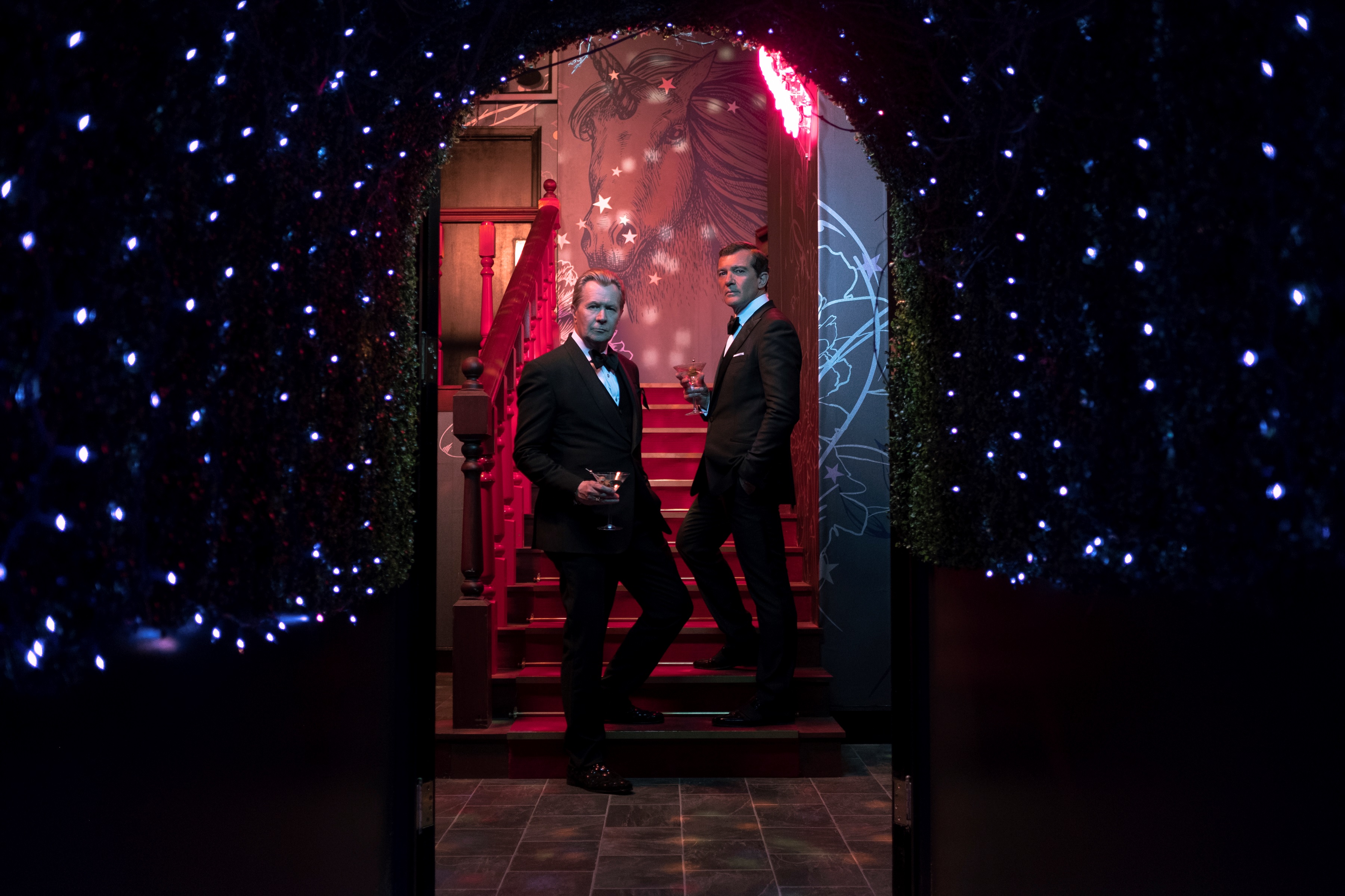 L’idea all’inizio era quella di non allontanarsi troppo dal tracciato e provare a fare una cosa alla Spotlight, tanto per citare un esempio recente, ma complice l’antipatia dello sceneggiatore Scott Z. Burns per i giornalisti e la loro retorica nell’attribuirsi il merito della rivelazione che poi è farina del sacco del whistleblower soprannominatosi Mr. John Doe, la conclusione è stata quella di provare a raccontare tutto come fosse uno show, e infatti Oldman e Banderas agiscono da veri e propri host da varietà, tra battute, spiegazioni barocche e gesticolate e qualche scena in character (ma comunque sopra le righe) all’interno della narrazione principale. Il piano-sequenza con cui si rivelano all’inizio del film, introducendo su un palcoscenico preistorico come funziona il concetto di credito e a quali implicazioni folli può arrivare nel moderno sistema economico-finanziario, è tutto un programma, non è che l’inizio di un montaggio frizzante e diversificato (animazione, compenetrazioni spaziali, la mdp che si fa scorgere a più riprese e in più modi) che è la vera chiave che permette a questo film di incastonarsi nella categoria della commedie.